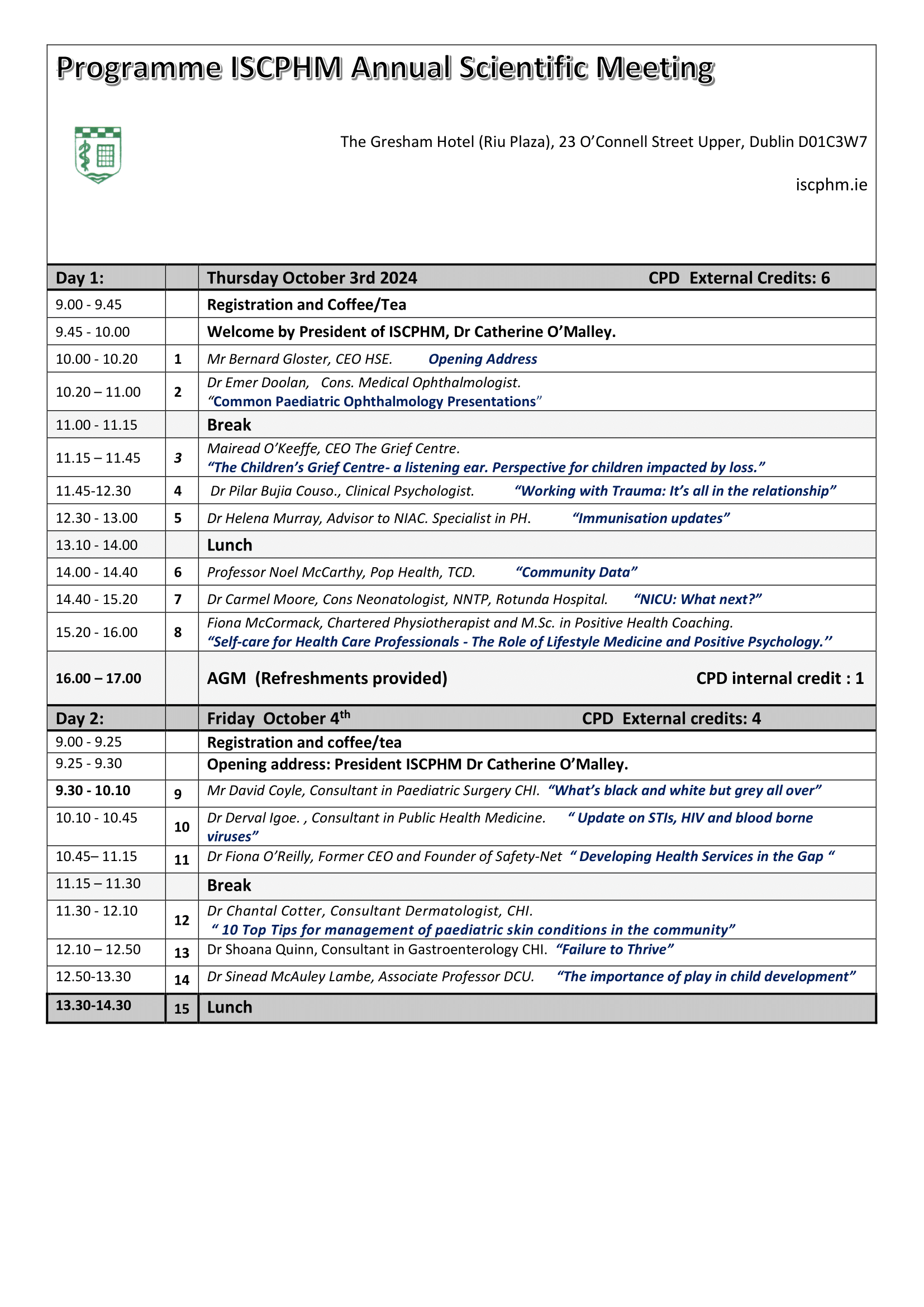 The Irish Society of Community and Public Health Medicine’s Annual Scientific Meeting,